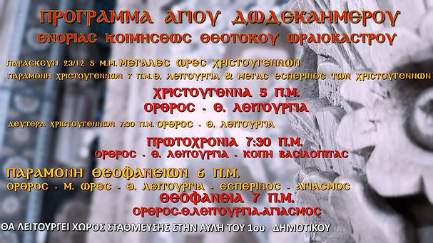 ΠΡΟΓΡΑΜΜΑ ΑΓΙΟΥ ΔΩΔΕΚΑΗΜΕΡΟΥ Ι.Ν. ΚΟΙΜΗΣΕΩΣ ΘΕΟΤΟΚΟΥ ΩΡΑΙΟΚΑΣΤΡΟΥ